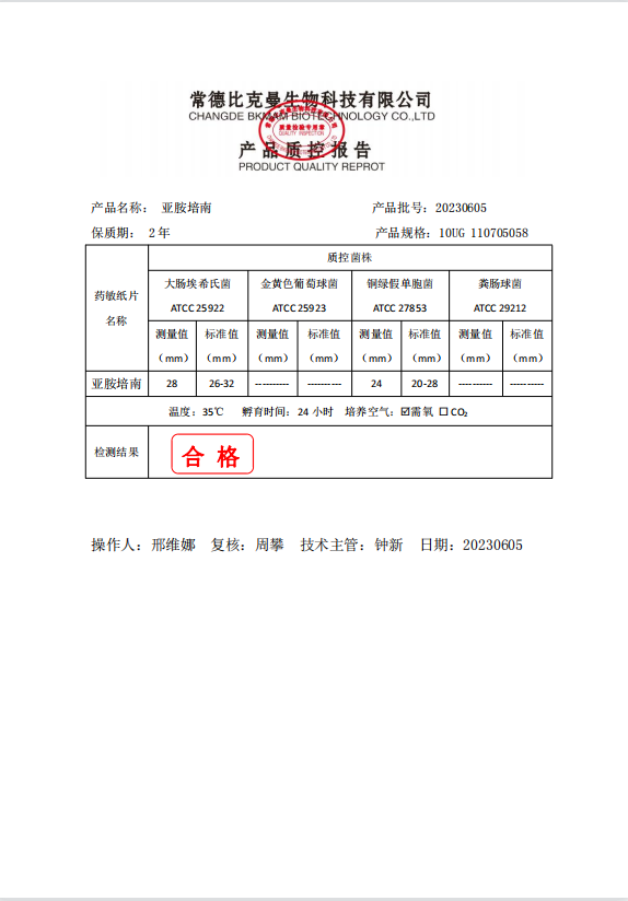 110705058 比克曼生物 亞胺培南 10UG 20片瓶 20230605