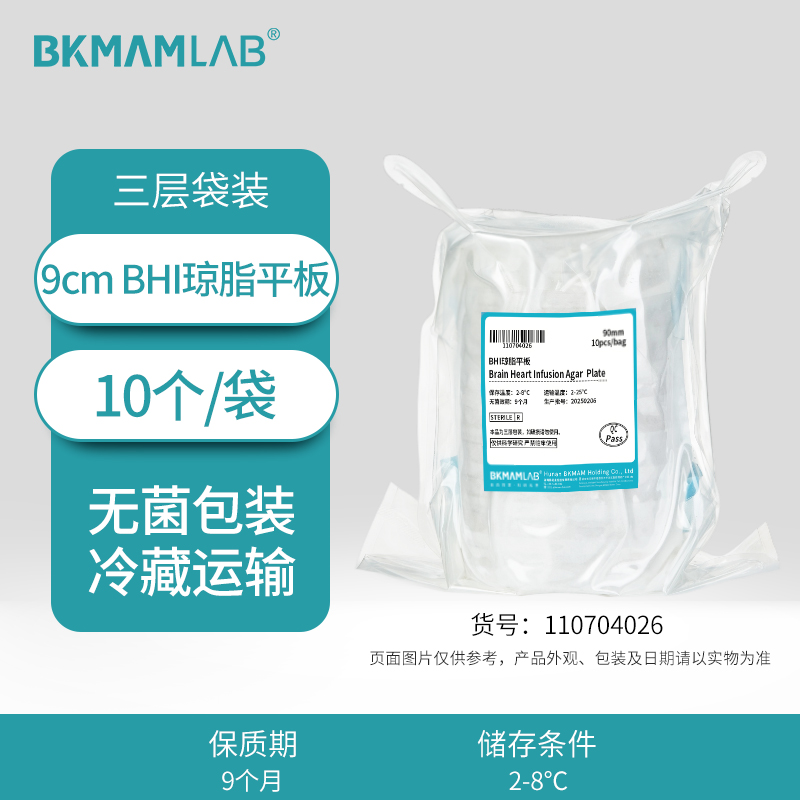 • BHI(腦心浸液)瓊脂平板10個(gè)/袋 110704026