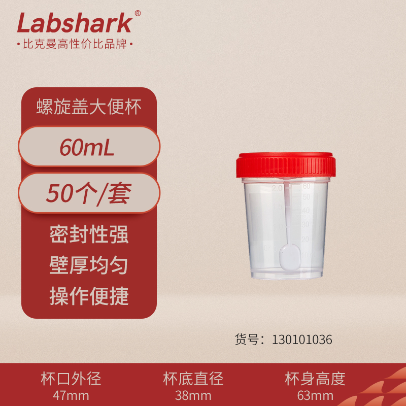 60mL可疊螺旋蓋 大便杯 50個/套 130101036