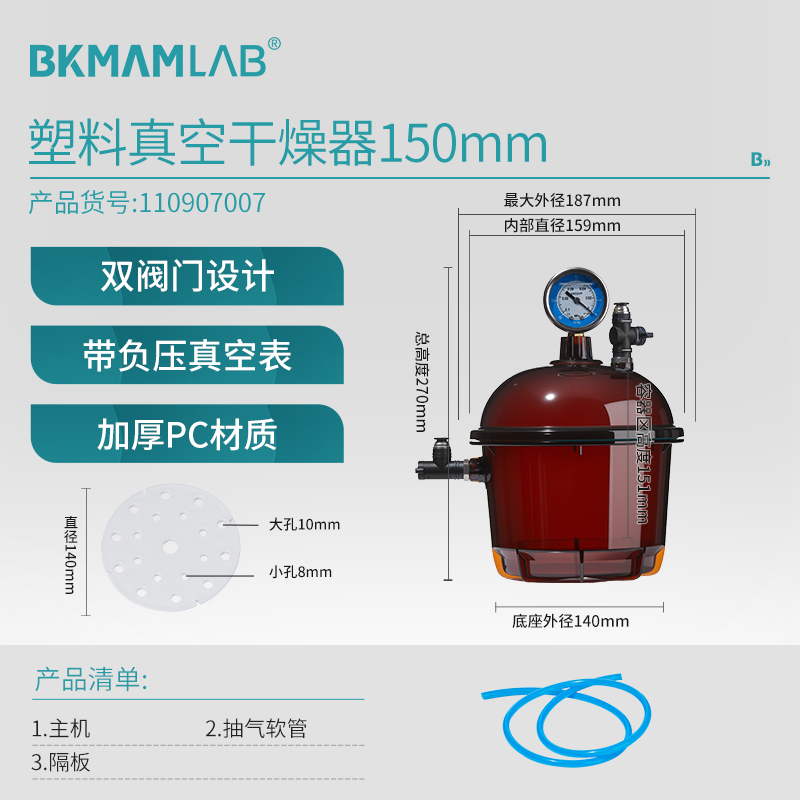 150mm 棕色塑料真空干燥器 BKMAMLAB 110907007