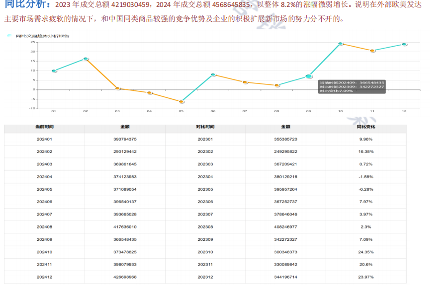 結(jié)合季度趨勢(shì)分析(如2024年環(huán)比增長(zhǎng)8.2%),提前制定出口策略。