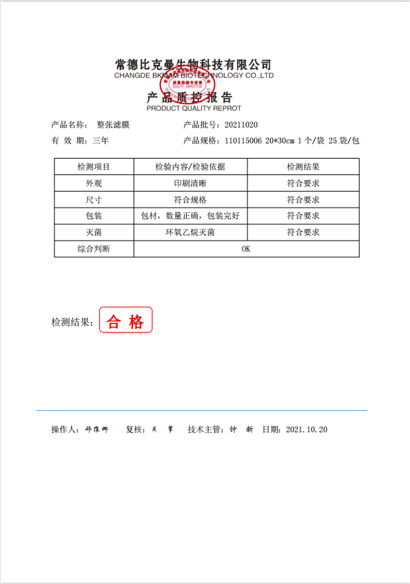整張濾膜 (紙塑包裝) 20x30cm 1個袋 25袋包 110115006 20211020