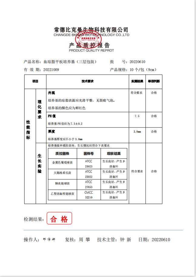 比克曼生物 血瓊脂平板培養(yǎng)基 (三層包裝)9cm 10個袋 110704011 20220610