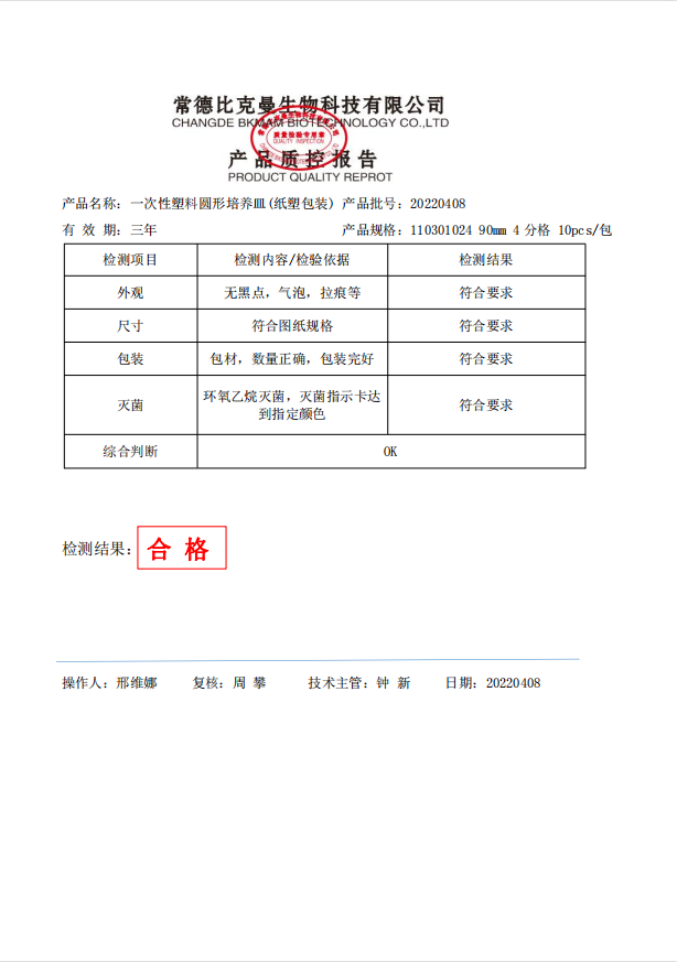 一次性圓形塑料培養(yǎng)皿 (紙塑包裝) 90mm4分格 10個(gè)袋 110301024 20220408