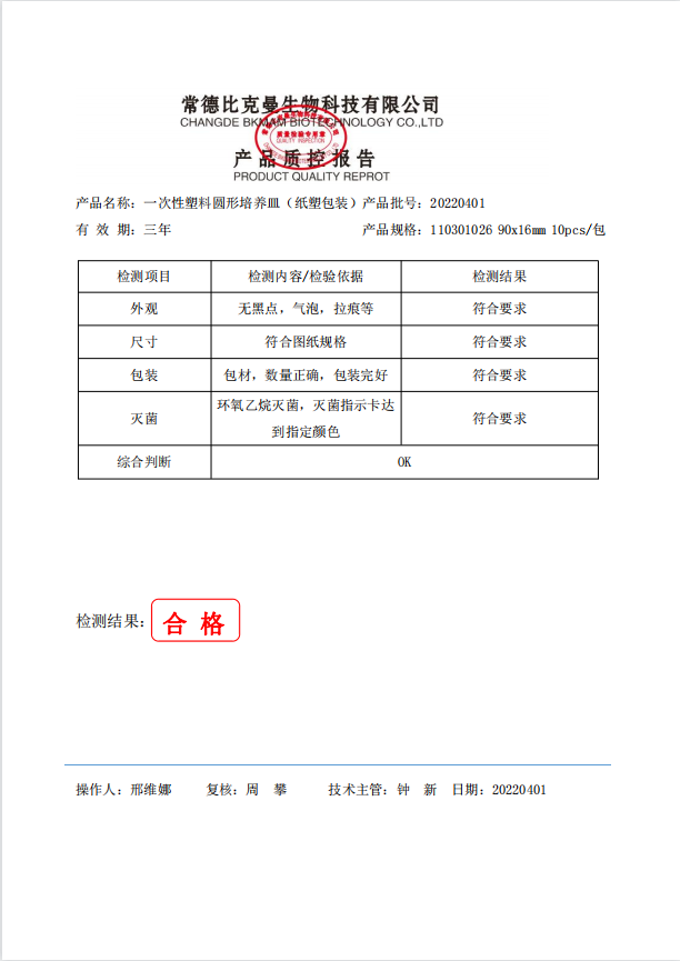 一次性塑料圓形培養(yǎng)皿 (紙塑包裝) 90x16mm 10個袋 110301026 20220401