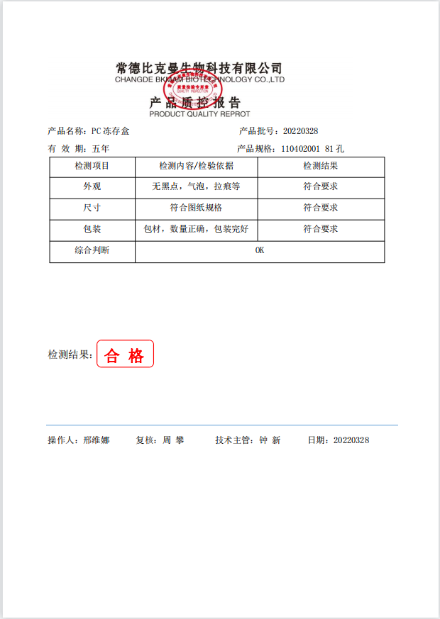 比克曼生物 PC凍存盒 81孔 110402001 20220328
