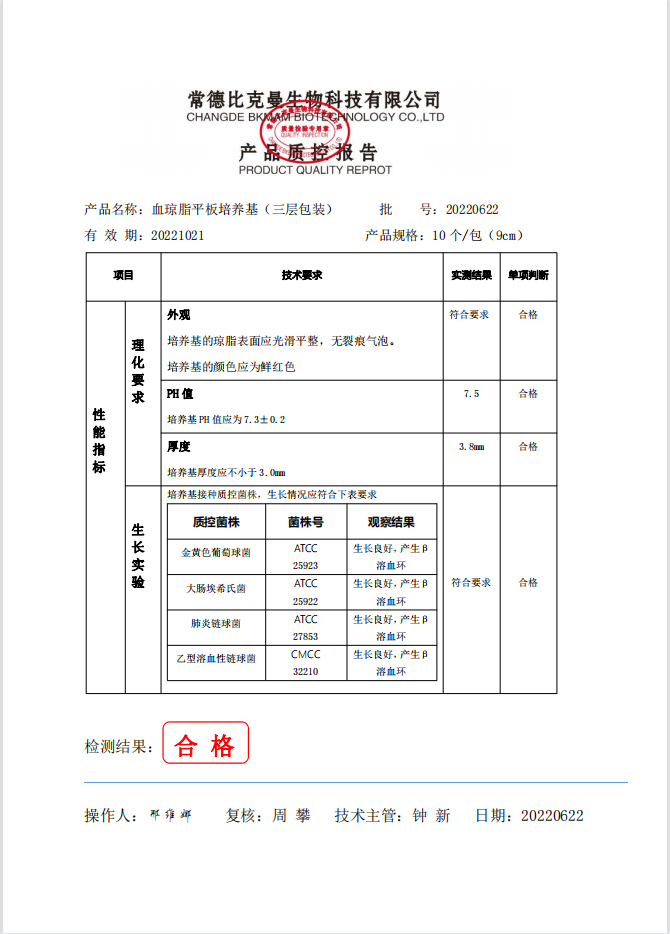 比克曼生物 血瓊脂平板培養(yǎng)基 (三層包裝)9cm 10個(gè)袋 110704011 20220622