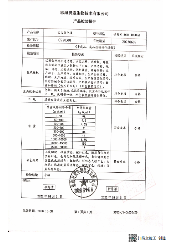 貝索 巴氏染色液 橘黃G 1000ml BA4035 C220301