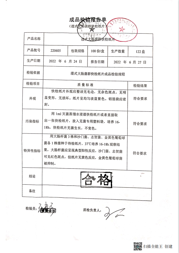 康華 濕式大腸菌群快檢紙片 100份盒 160711012 220605