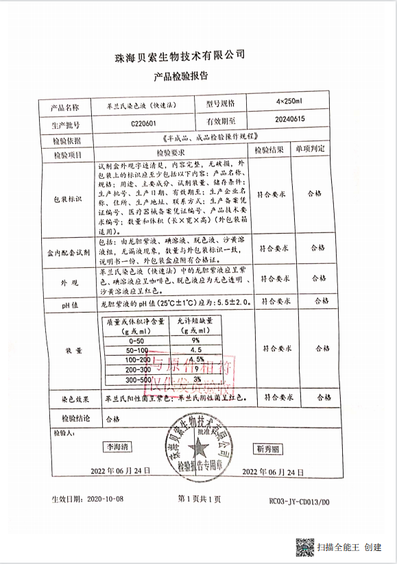 貝索 革蘭氏染色液(快速法) 250ml4盒 BA4012 C220601