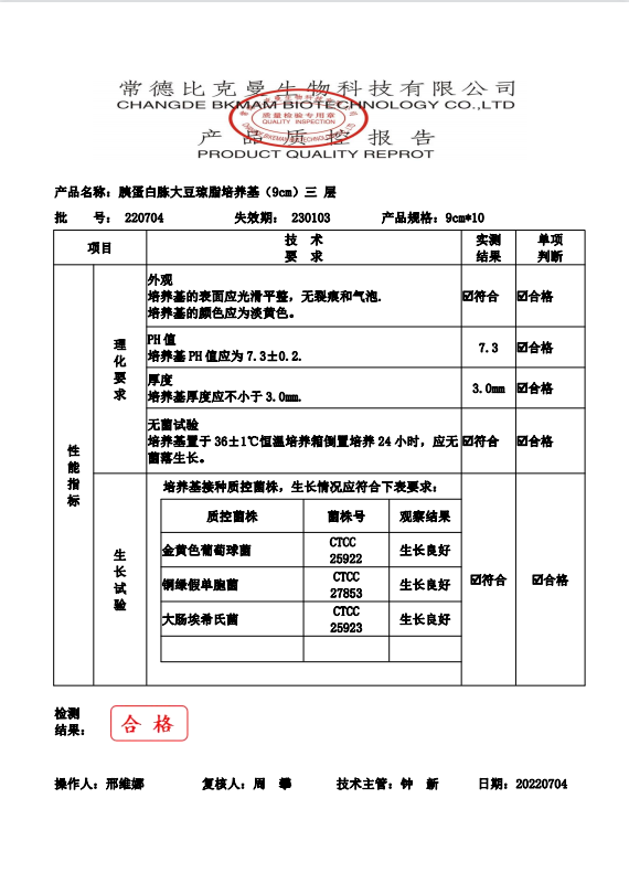 比克曼生物 胰蛋白胨大豆瓊脂(三層包裝) TSA瓊脂平板 9cm 10個(gè)袋 110704022 220704