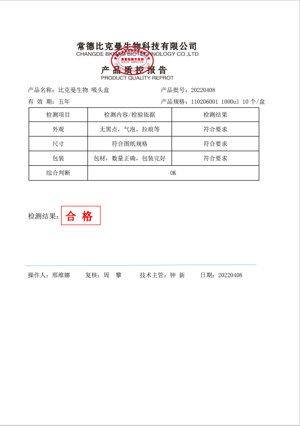 比克曼生物 吸頭盒 1000ul 10個盒 110206001 20220408