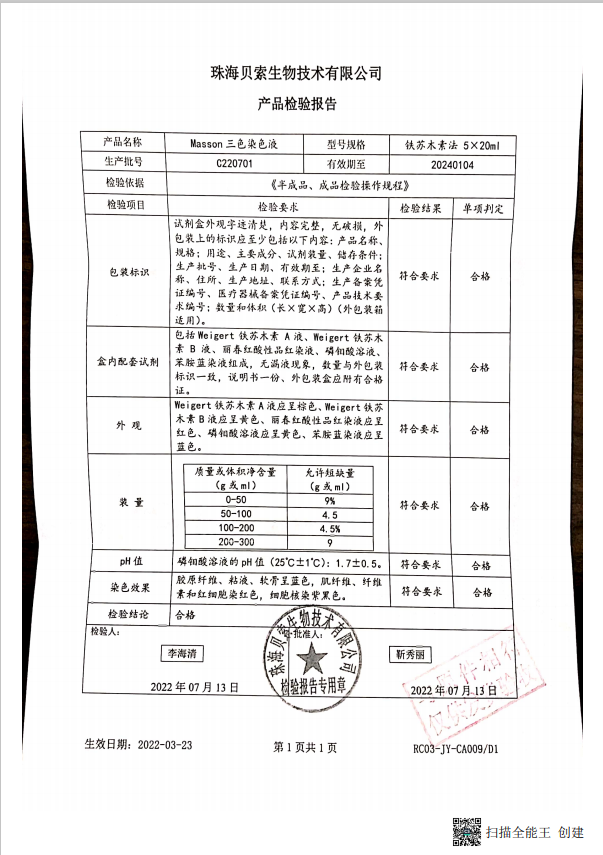 貝索 Masson三色染色液 5x20ml盒 BA4079A C220701