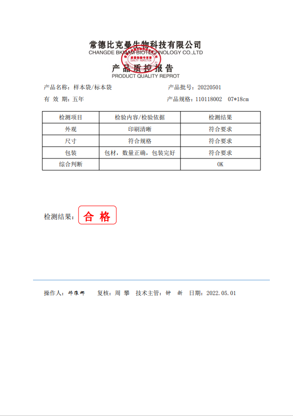 比克曼生物 樣本袋 07x18cm 100個(gè) 袋 110118002 20220501