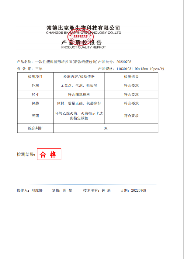 一次性圓形塑料培養(yǎng)皿 (新款紙塑包裝) 90x15mm 10個袋 110301031 20220708