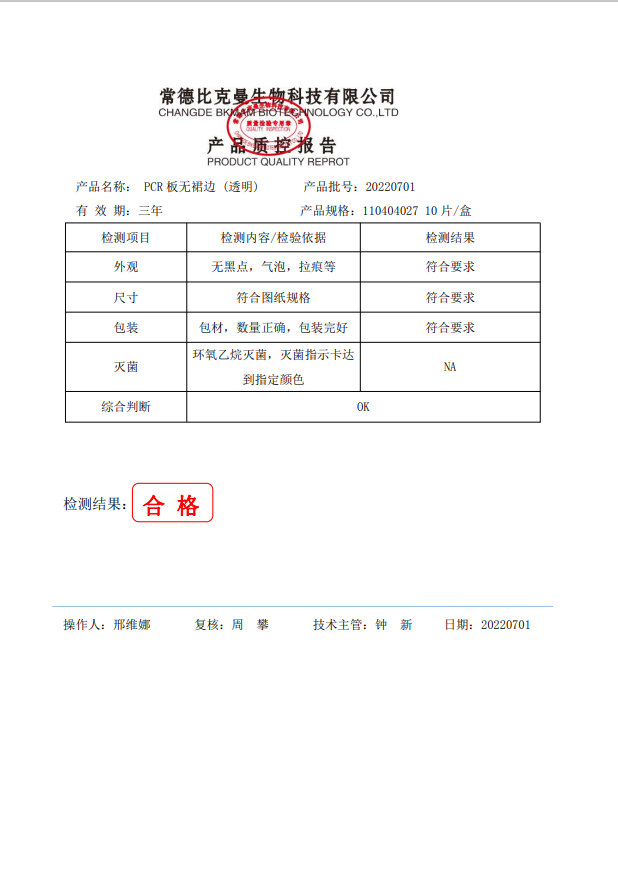 比克曼生物 PCR板無裙邊 (透明) 0.2ml 10片盒 110404027 20220701
