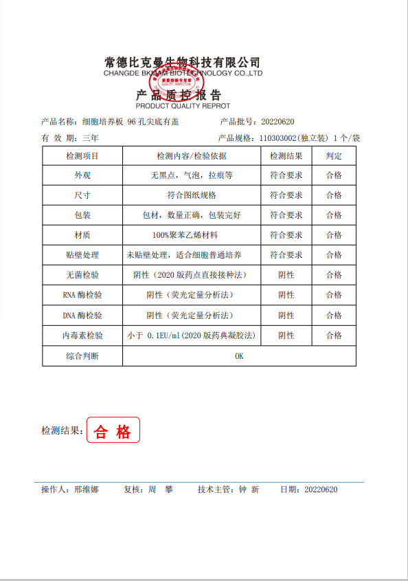 比克曼生物 細(xì)胞培養(yǎng)板 96孔尖底有蓋 (獨立裝) 1個袋 110303002 20220620