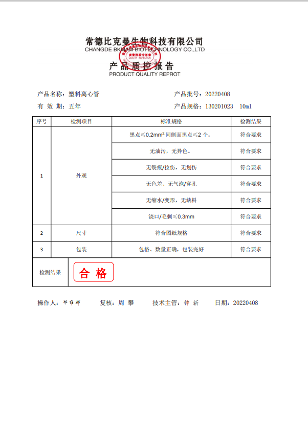 BKMAM 離心管 10ml 50個(gè)袋 130201023 20220408