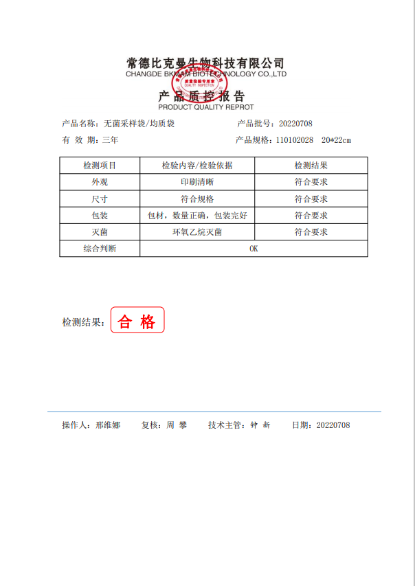 立式無(wú)菌采樣袋 20x22(帶壓條) 100個(gè)裝 110102028 20220708