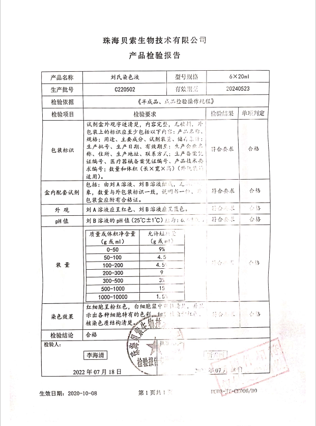 貝索 劉氏染色液 6x20ml BA4031 C220502