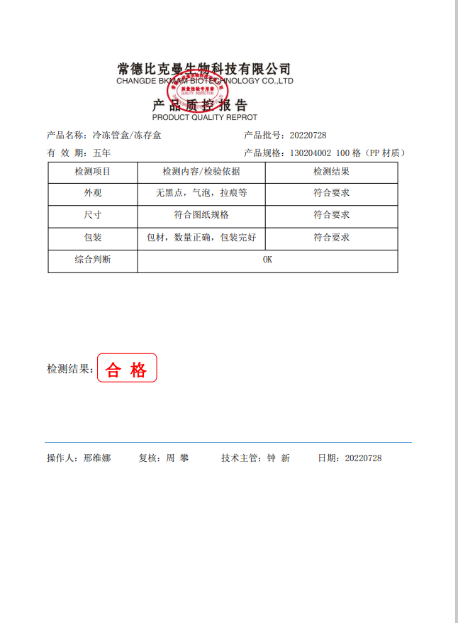 BKMAM 冷凍管盒 100格 PP材質(zhì) 130204002 20220728