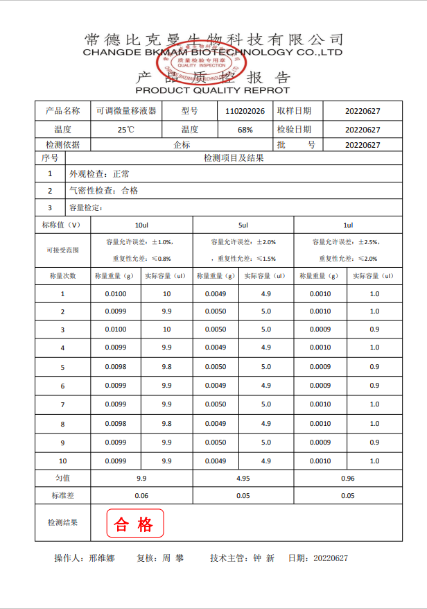 比克曼生物 微量移液器可調(diào)移液槍 0.5-10ul ( 八道) 110202026 20220627
