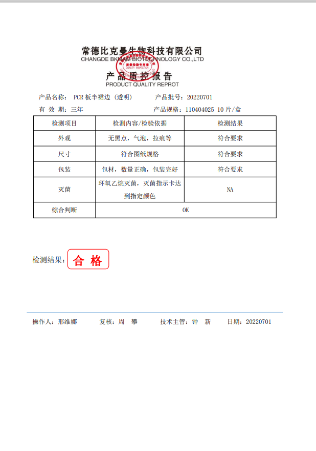 比克曼生物 PCR板半裙邊 (透明) 0.2ml 10片盒 110404025 20220701