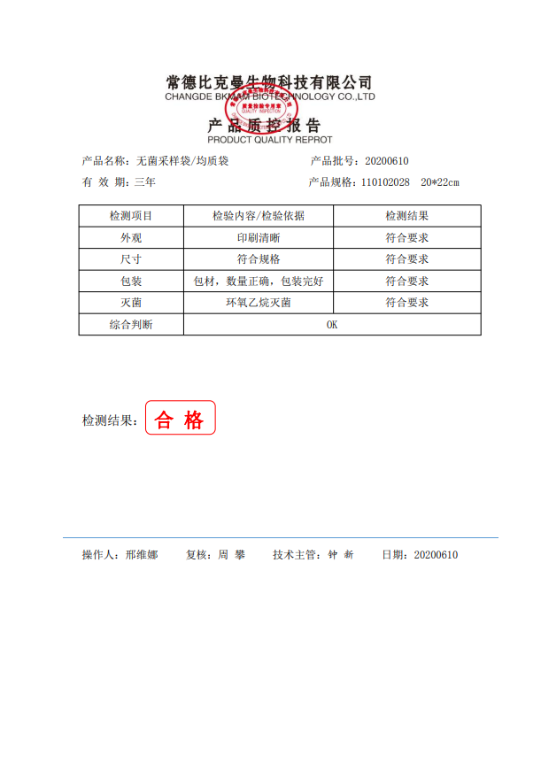 立式無(wú)菌采樣袋 20x22(帶壓條) 100個(gè)裝 110102028 20206010