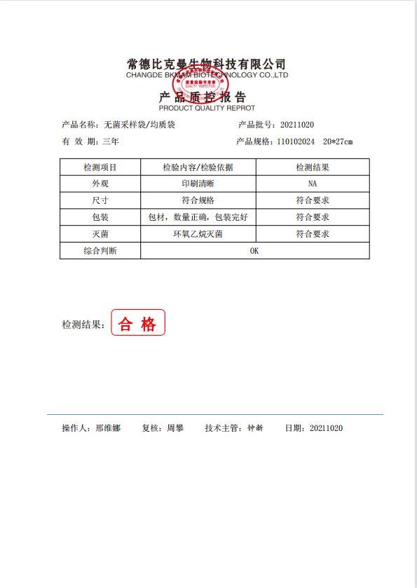 立式無(wú)菌采樣袋 20x27(無(wú)印刷帶壓條) 100個(gè)裝 110102024 20211020