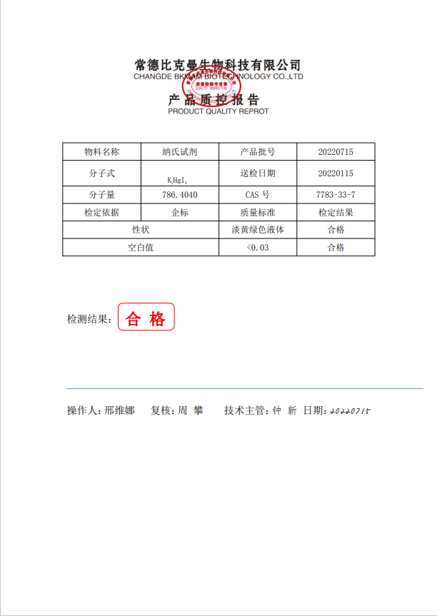 比克曼生物 納氏試劑 500ml 瓶 110702071 20220715