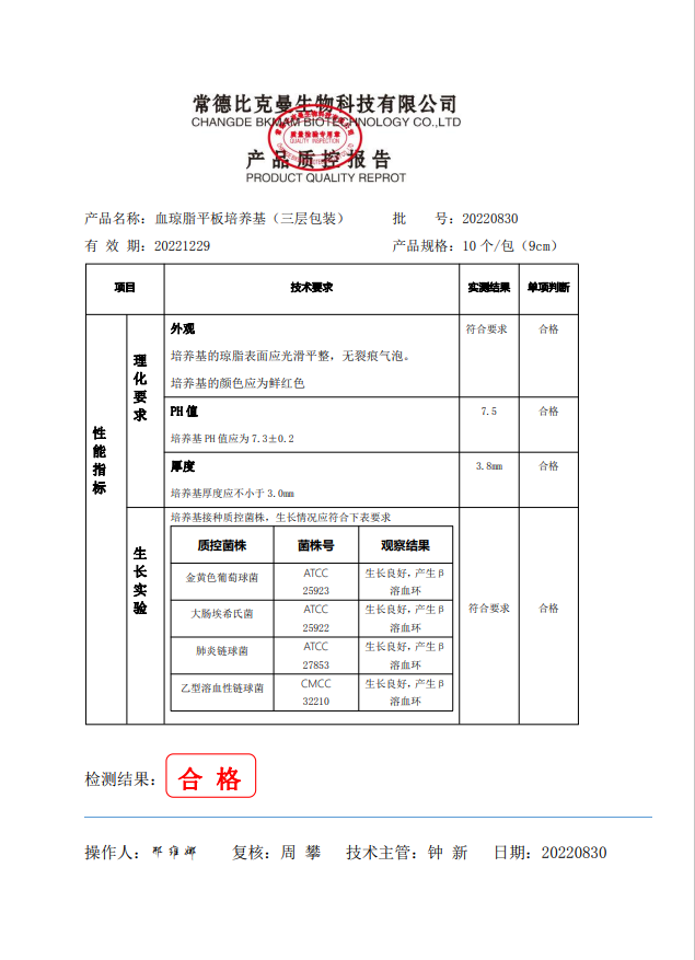比克曼生物 血瓊脂平板培養(yǎng)基 (三層包裝)9cm 10個袋 110704011 20220830