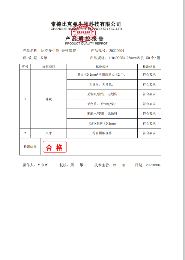 比克曼生物 采樣管架48孔 26mmx48孔 PP 110409054 20220904