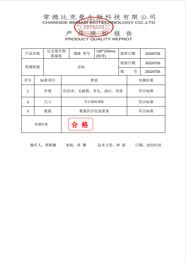 比克曼生物 稱量紙 150x150mm(特厚) 110415002 20220726