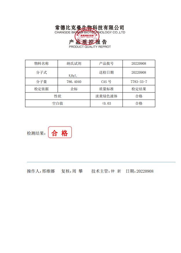 比克曼生物 納氏試劑 500ml 瓶 110702071 20220908