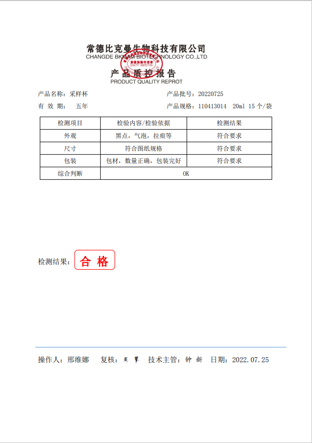 比克曼生物 采樣杯 20ml 15個(gè)袋 110413014 20220725
