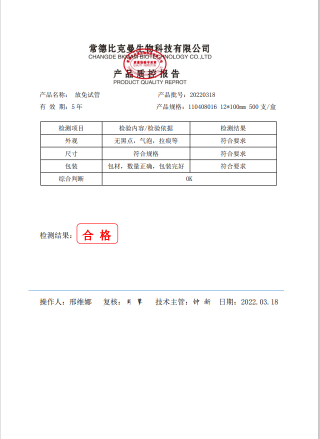 比克曼生物 一次性塑料試管(PE) 12x100mm 500支盒 20220318