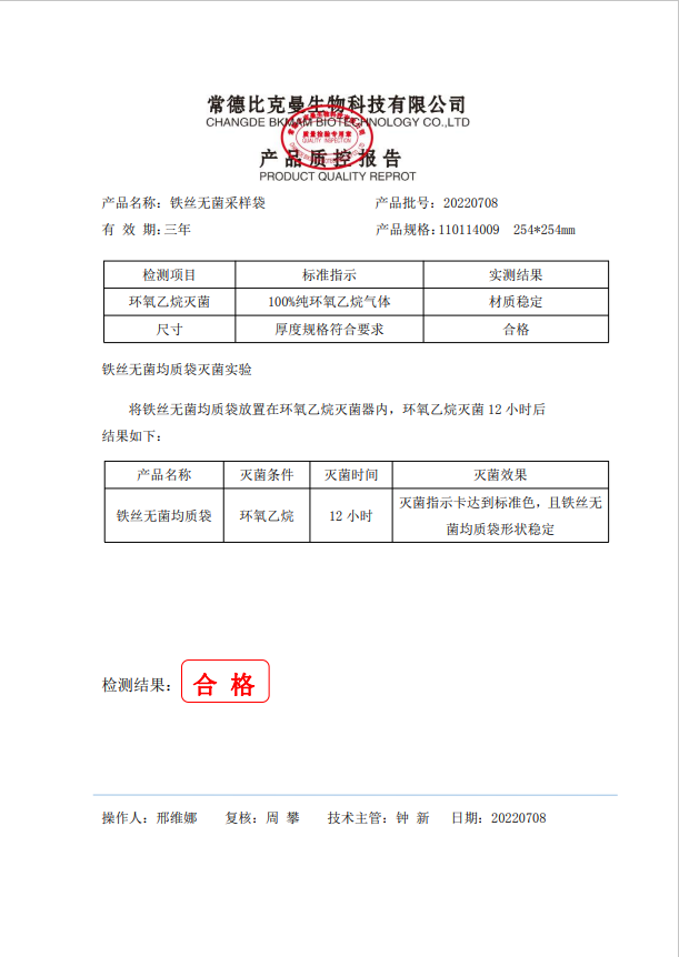 鐵絲無菌采樣袋 254x254 50個(gè)裝 110114009 20220708