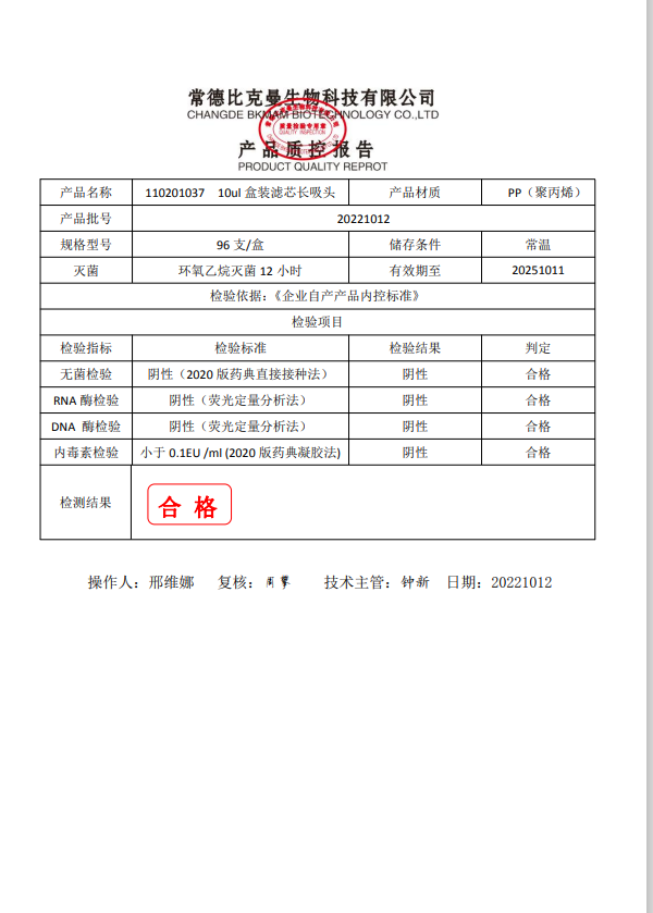盒裝吸頭 10ul 盒裝濾芯長吸頭 96支裝 110201037 20221012