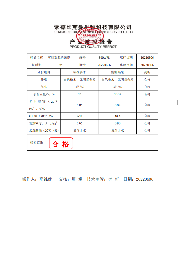 比克曼生物 實(shí)驗(yàn)器皿清洗劑 500g瓶 110702045 20220606