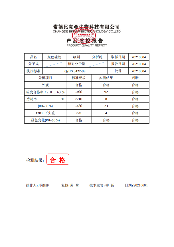 比克曼生物 變色硅膠 AR分析純 500g瓶 110702005 20210604