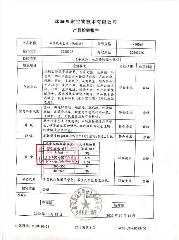 貝索 革蘭氏染色液(快速法) 100ml4盒 C220902