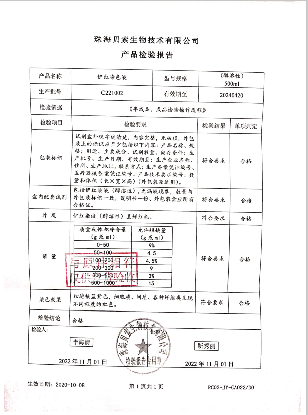 貝索 伊紅染液(醇溶性) 500ml BA4099 C221002