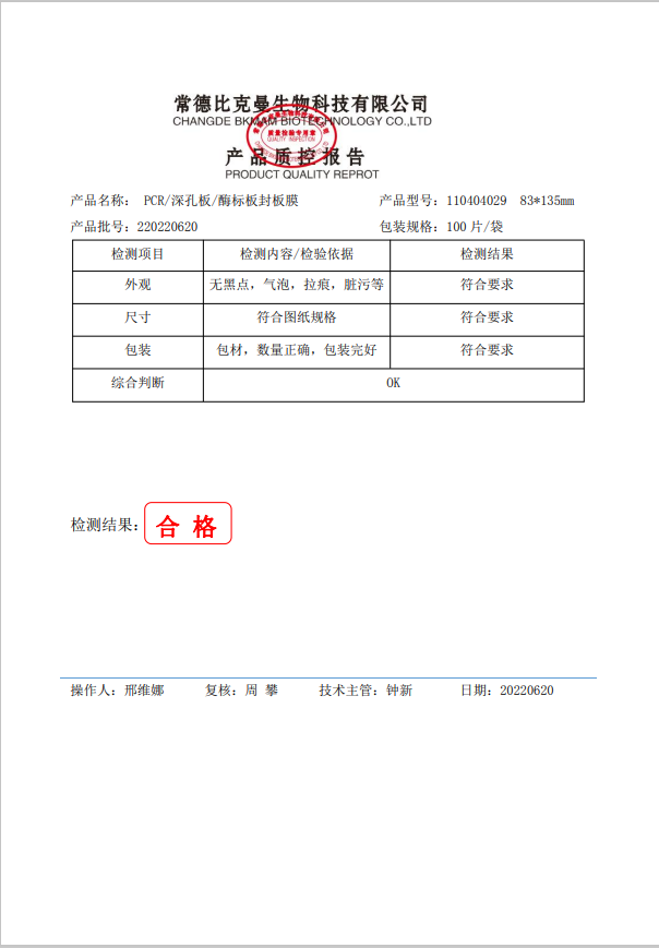 110404029 PCR深孔板酶標(biāo)板封板膜(印刷編號(hào)透明) 83x135mm 100片袋 20220620