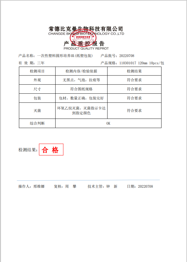 110301017 一次性圓形塑料培養(yǎng)皿 (紙塑包裝) 120mm 10個袋 20220708