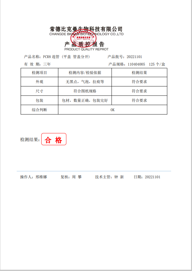 110404005 PCR8連管 (平蓋 管蓋分開(kāi)) 0.2ml 125個(gè)盒 20221101