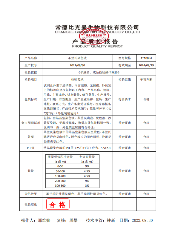 比克曼生物 革蘭氏染色液 100ml4支裝 110703002 20220930