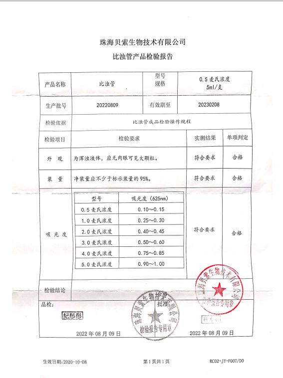 貝索 麥氏比濁管 (0.5濃度5支(5支盒) BC1115A 20220809
