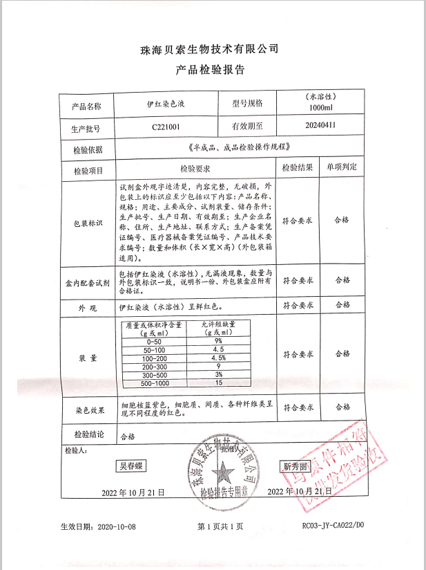 貝索 伊紅染色液(水溶性)1000ml BA4024 C221001