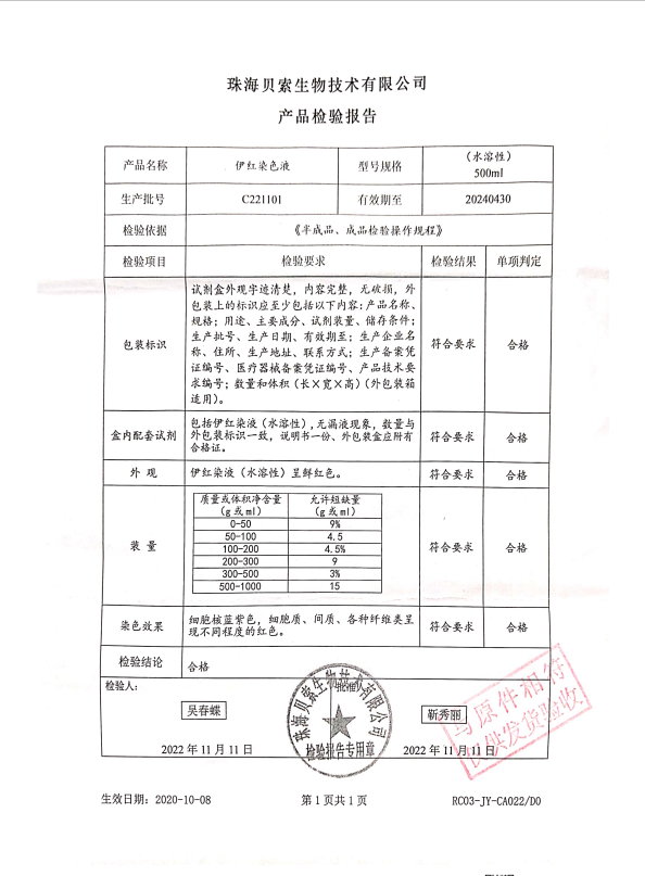 貝索 伊紅染液(醇溶性) 500ml BA4099 C221101