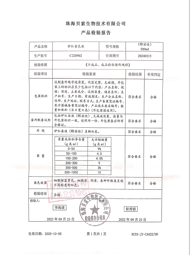 貝索 伊紅染液(醇溶性) 500ml BA4099 C220902